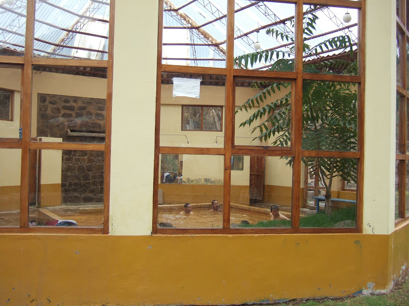 - The hot springs were full of a bunch of Peruvian men and boys who spoke no English, didn't understand that we spoken no English, and seemed to think we looked very funny.